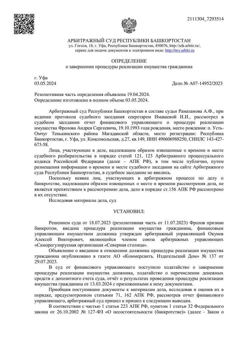 Мы рады сообщить об очередном успехе компании "ДОЛГАМ.НЕТ"! Дело №А07-14952/2023 было рассмотрено Арбитражным судом Республики Башкортостан.