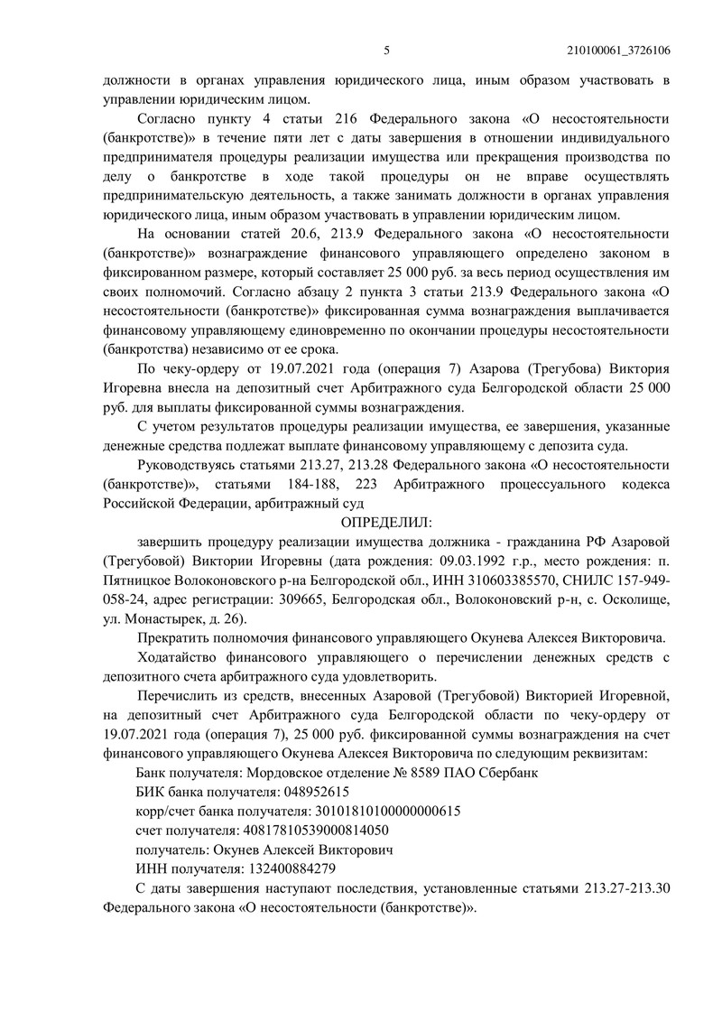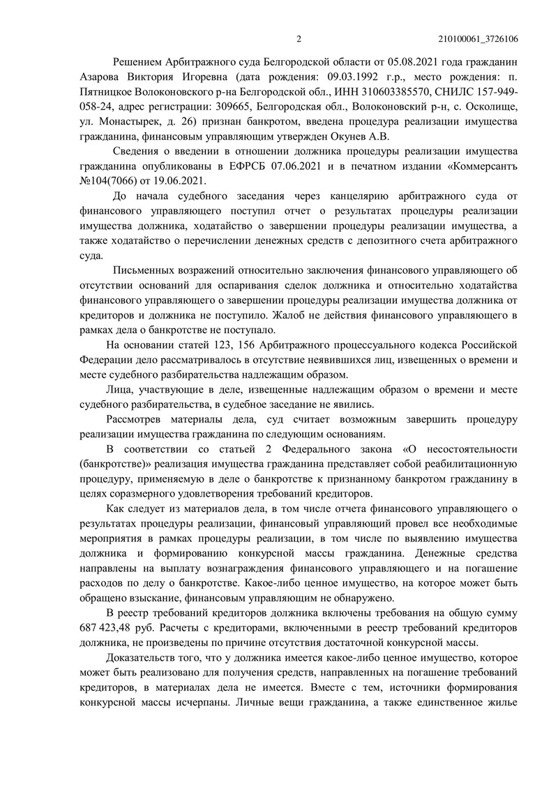 26 июля 2022 года суд вынес решение о завершении процедуры реализации имущества нашего клиента и прекращении полномочий финансового управляющего.