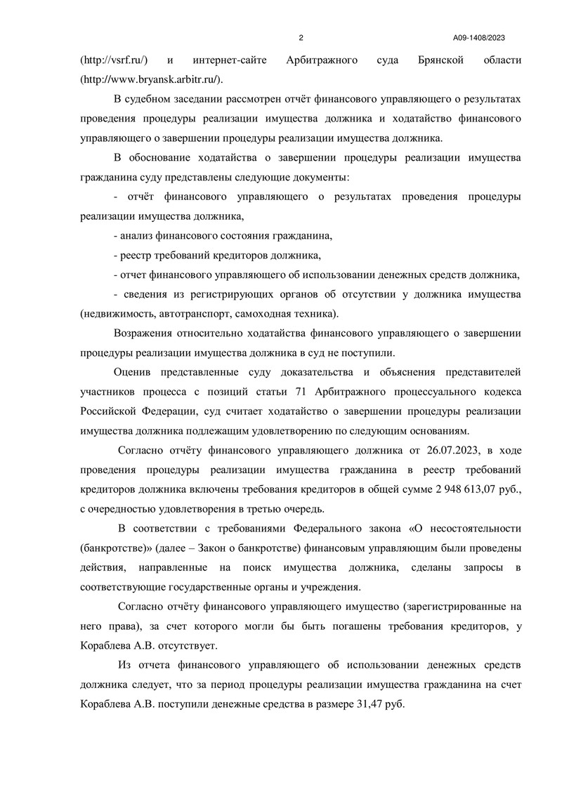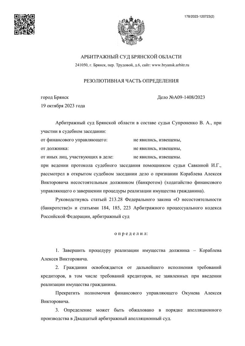 В очередной раз компания "ДОЛГАМ.НЕТ" продемонстрировала свой высокий профессионализм, помогая гражданам выбраться из долговой ямы. На этот раз счастливым клиентом стал житель Брянской области, который был признан банкротом в рамках дела №А09-1408/2023.