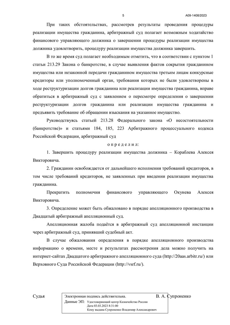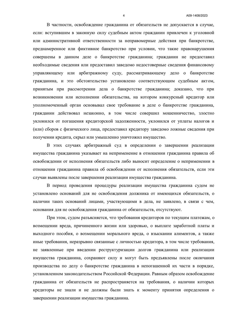 - Гражданин был освобожден от дальнейшего исполнения требований кредиторов, в том числе и тех, которые не были заявлены при введении процедуры реализации имущества.