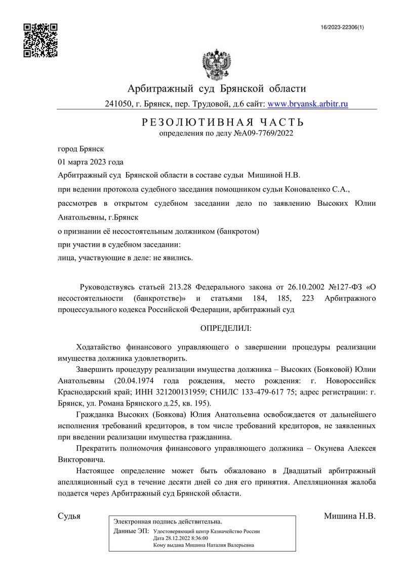 В очередной раз юридическая компания "ДОЛГАМ.НЕТ" успешно защитила интересы своего клиента в процессе банкротства. На этот раз счастливым клиентом стал гражданин, чье дело рассмотрел Арбитражный суд Брянской области.