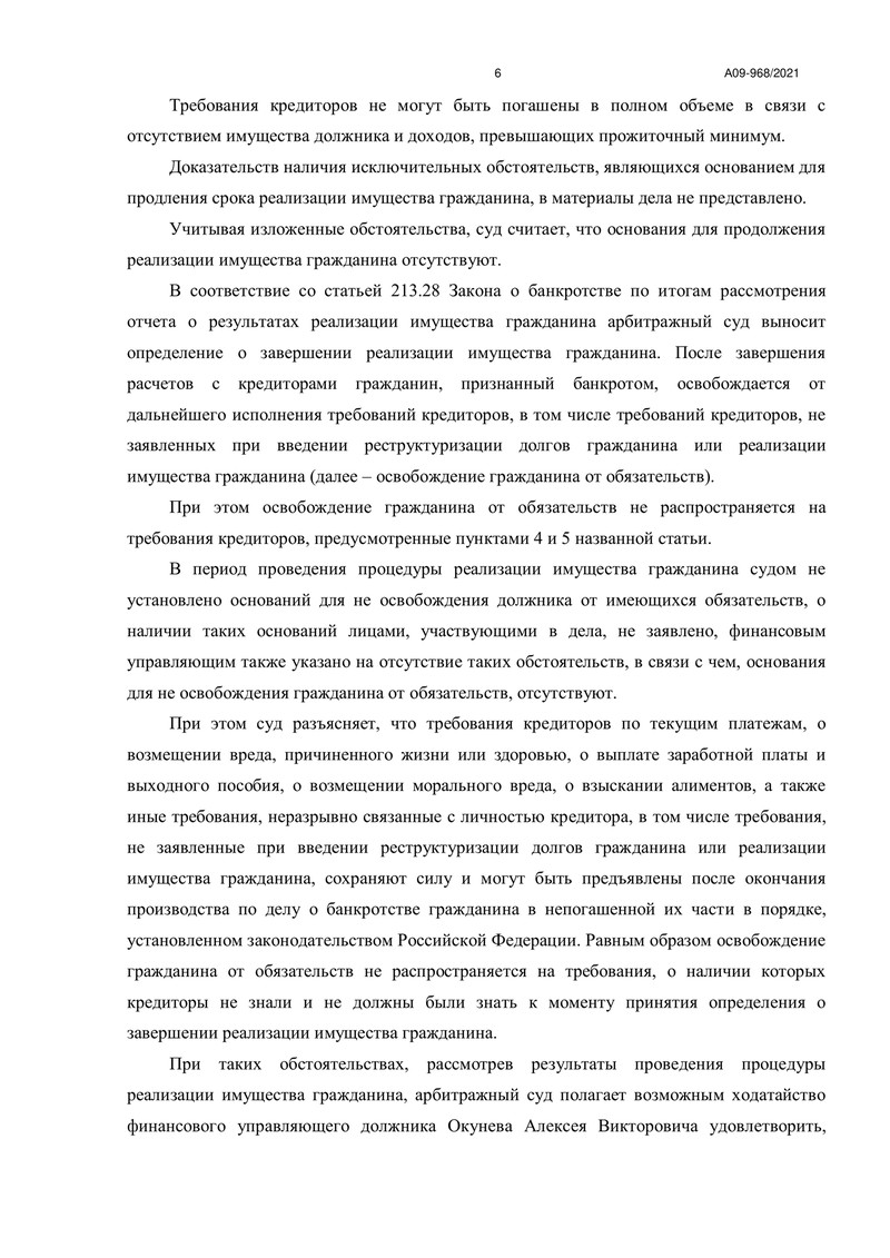 Наш клиент, благодаря профессиональной поддержке юристов компании "ДОЛГАМ.НЕТ", был освобождён от дальнейшего исполнения требований кредиторов, включая те, которые не были заявлены при введении процедуры реализации имущества.