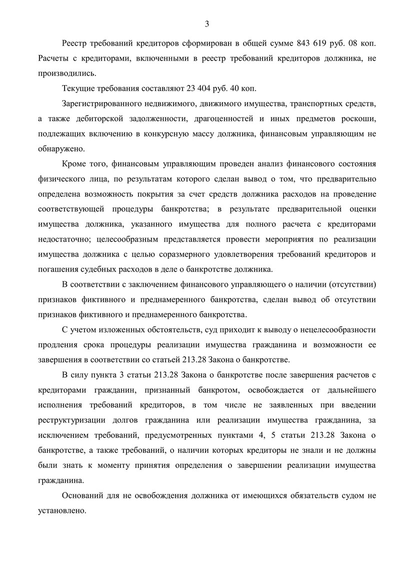 Отдельно подчеркнем важный момент: финансовый управляющий пришел к выводу об отсутствии признаков фиктивного и преднамеренного банкротства. Для суда это принципиально, поскольку при выявлении злоупотреблений освобождение от долгов может быть не предоставлено.