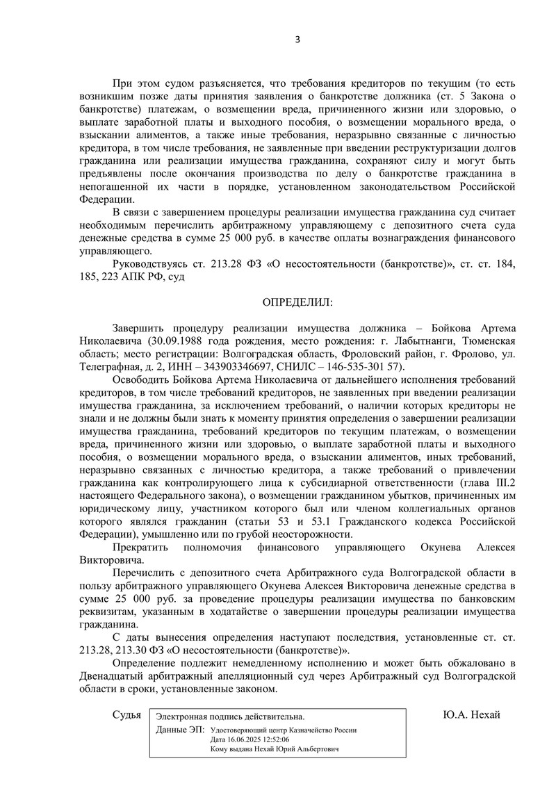 Арбитражный суд Волгоградской области рассмотрел дело №А12-34327/2024 и завершил процедуру банкротства в отношении нашего клиента. Это еще одно подтверждение высокой эффективности работы команды "ДОЛГАМ.НЕТ".