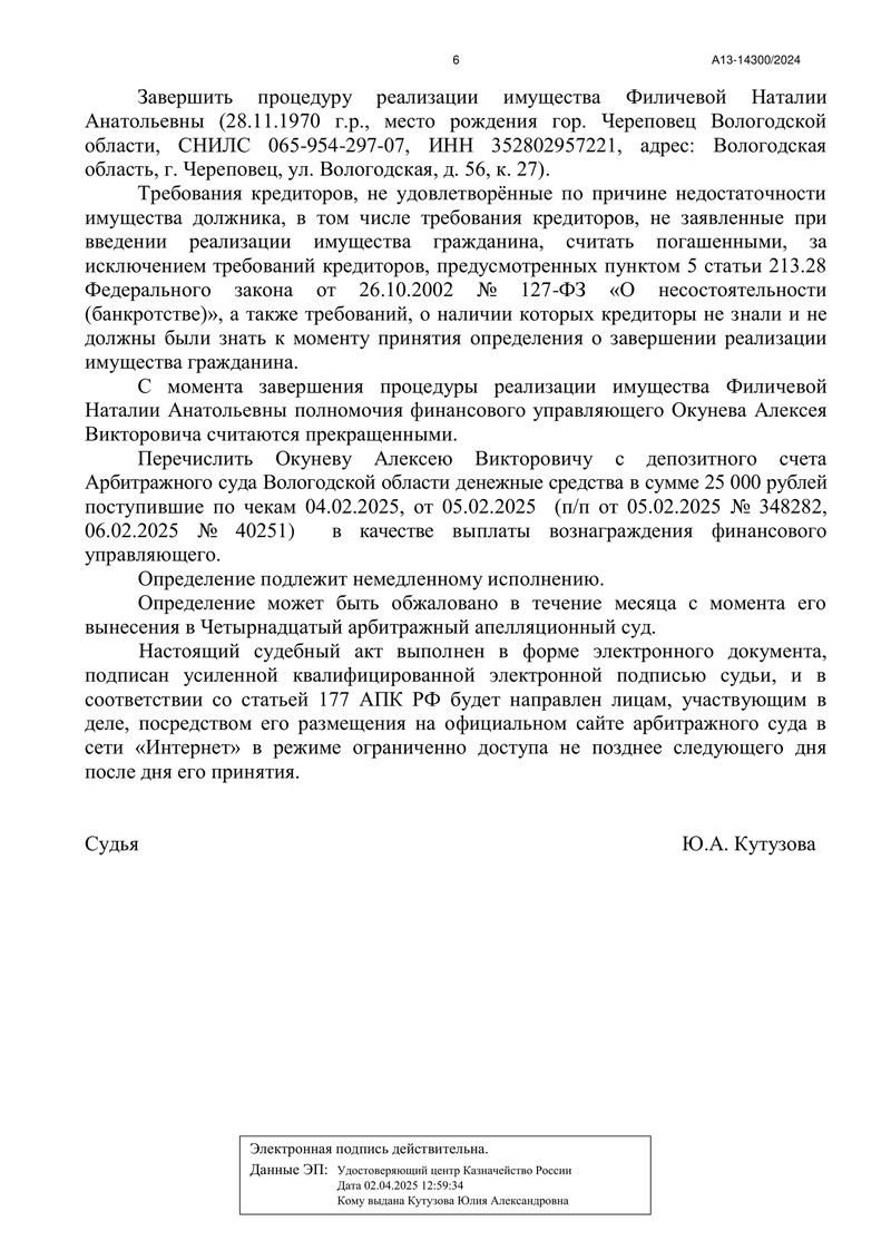 - Номер дела: А13-14300/2024