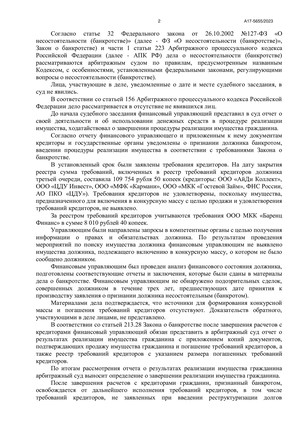 Дело № А17-5655/2023 было рассмотрено в Арбитражном суде Ивановской области. 19 июня 2023 года принято заявление о признании клиента несостоятельным (банкротом), и началась процедура реализации имущества.