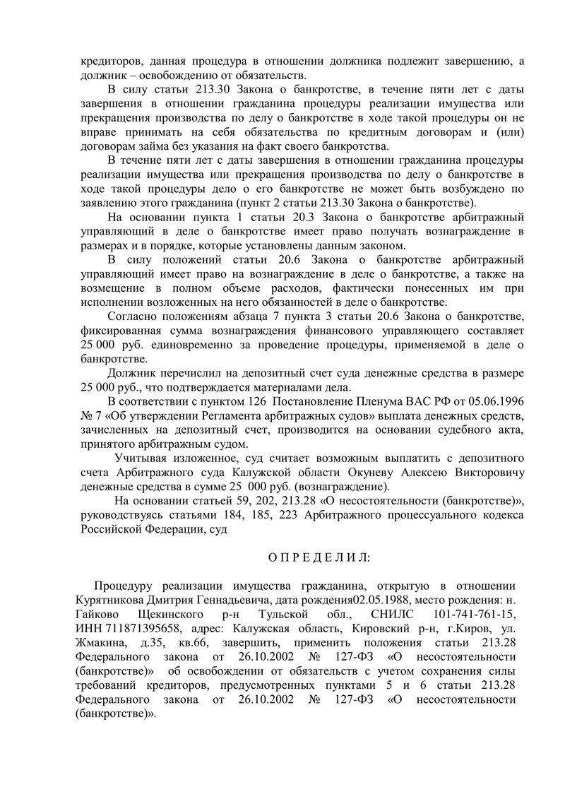 Еще один счастливый клиент компании "ДОЛГАМ.НЕТ" успешно прошел процедуру банкротства! Арбитражный суд Калужской области завершил дело №А23-1746/2023.