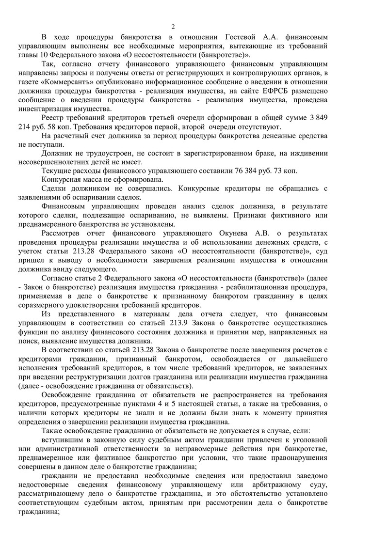 - Применены положения об освобождении должника от исполнения обязательств перед кредиторами.