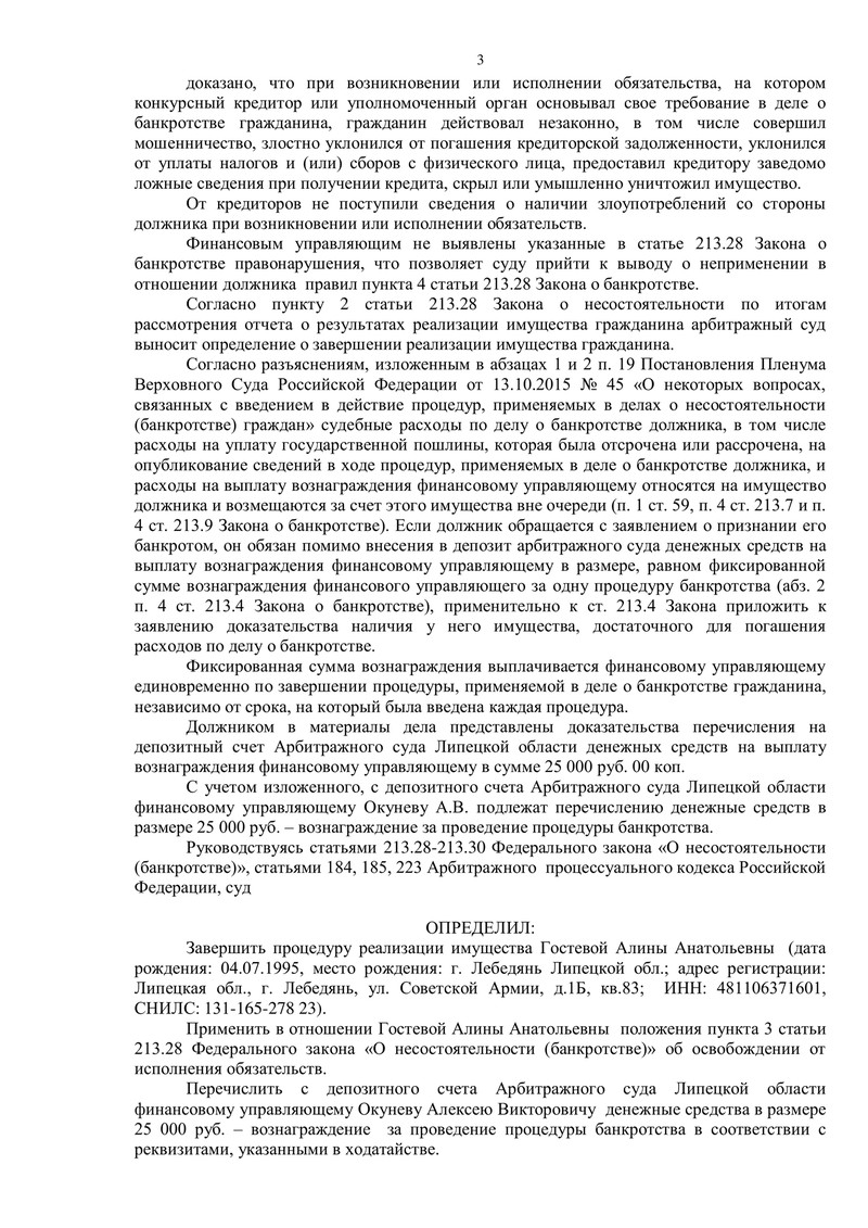 Почему это очередной успех ДОЛГАМ.НЕТ? Потому что наши специалисты сопровождают клиента на каждом этапе – от подачи заявления о признании банкротом до получения заветного судебного определения о списании долгов. Благодаря доскональному знанию законодательства, опыту работы и вниманию к деталям команда ДОЛГАМ.НЕТ добивается отмены долгов даже в самых сложных случаях. В данном деле не только полностью соблюдены все требования закона, но и обеспечен честный и прозрачный банкротный процесс. Экономический и юридический результат очевиден: наш клиент больше не должен банкам и кредитным организациям ни рубля.
