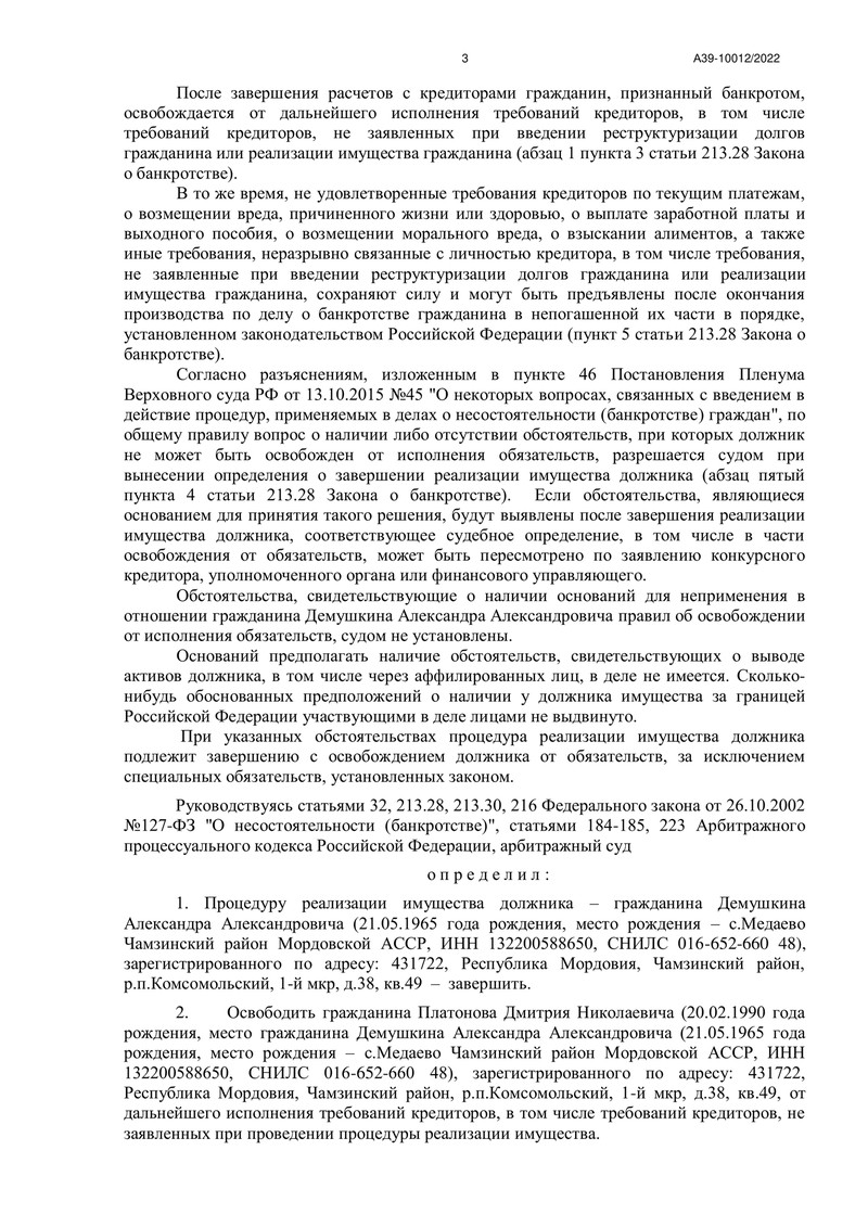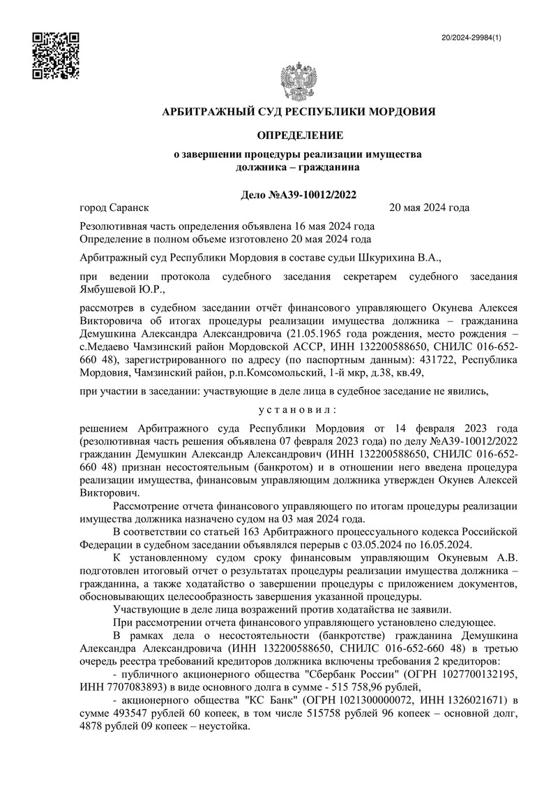 Компания "ДОЛГАМ.НЕТ" снова добилась успеха в деле о банкротстве физического лица. На этот раз мы помогли нашему клиенту освободиться от долговых обязательств в Арбитражном суде Республики Мордовия.