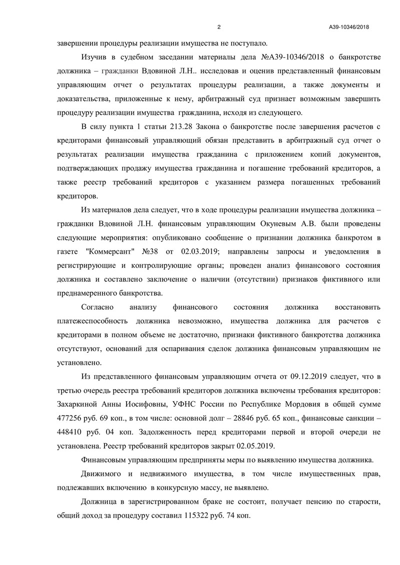 Финансовый управляющий подал в суд финальный отчет 9 декабря 2019 года. К этому моменту заявленные требования кредиторов составляли 477 256 рублей 69 копеек.