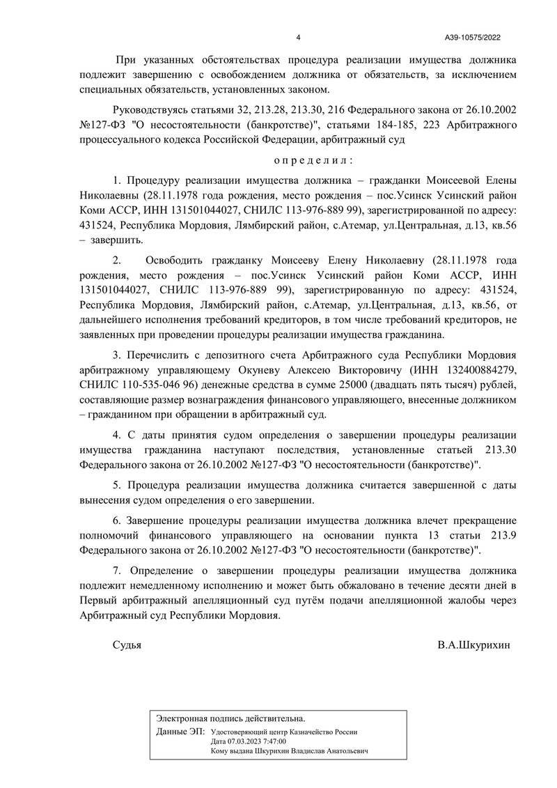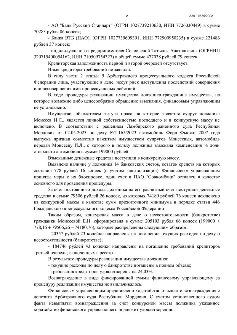 Дело № А39-10575/2022 рассматривалось Арбитражным судом Республики Мордовия. Итоговое определение по делу было вынесено 04 сентября 2023 года.