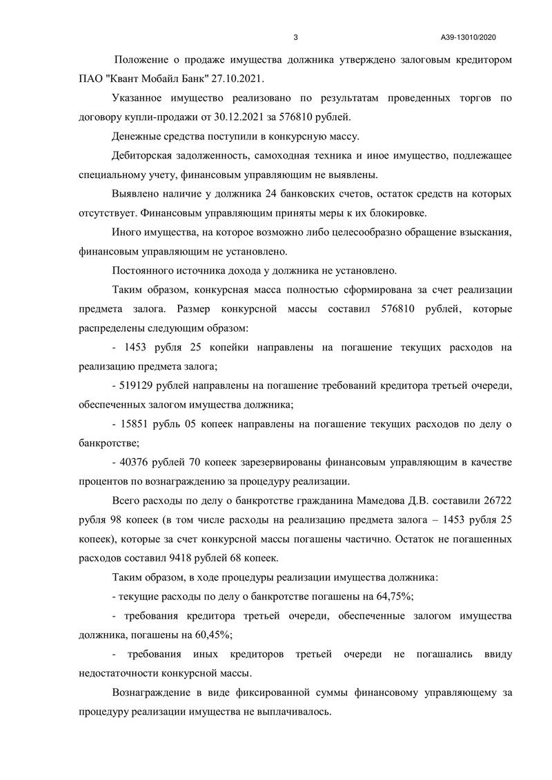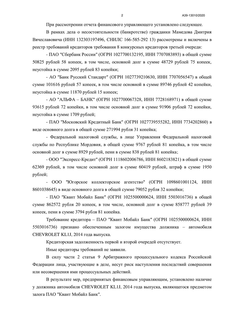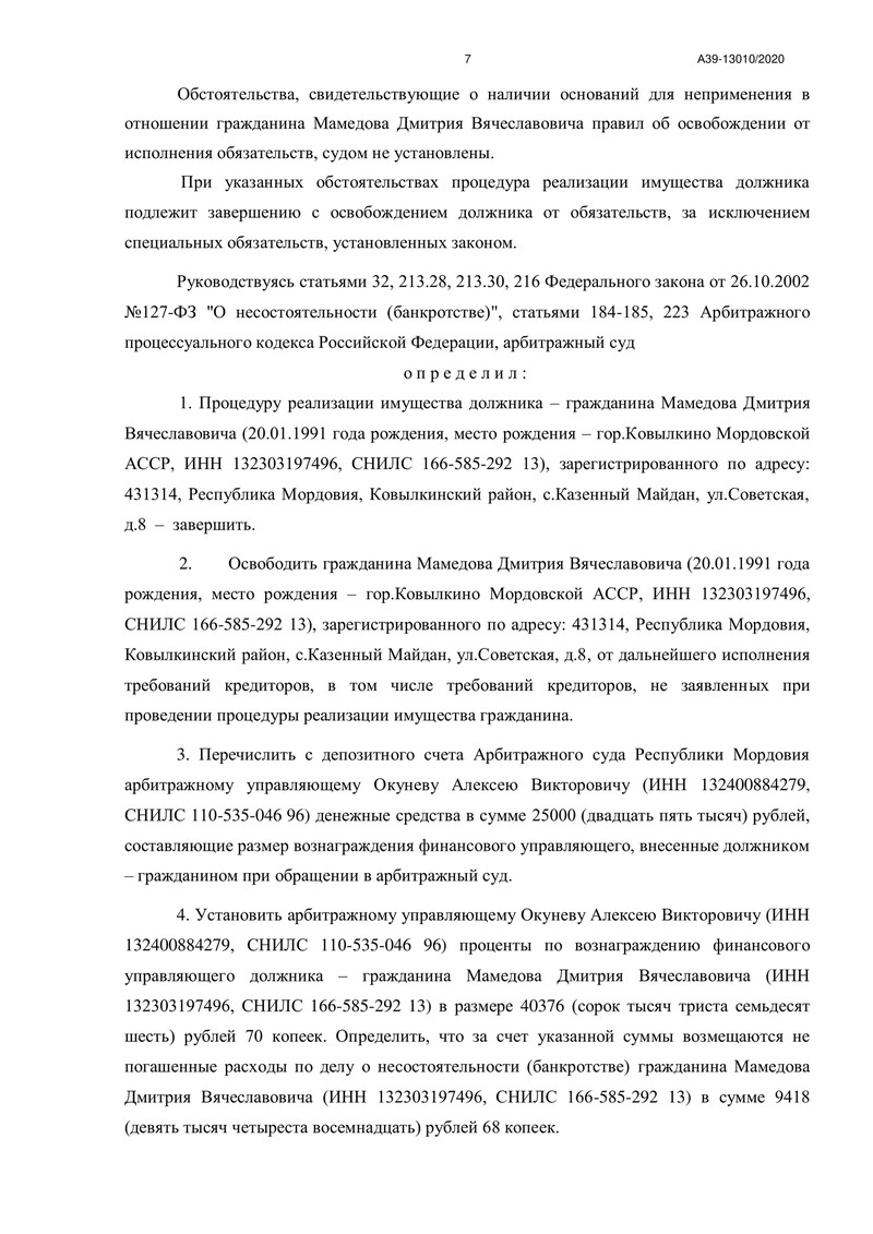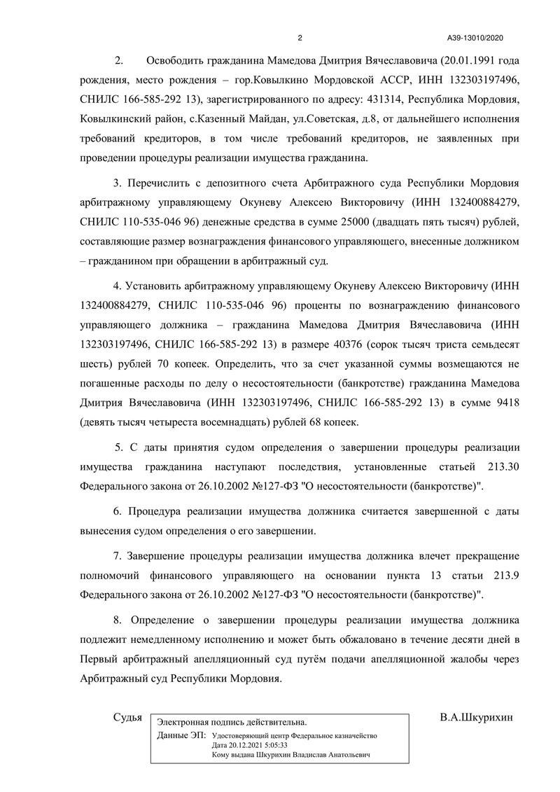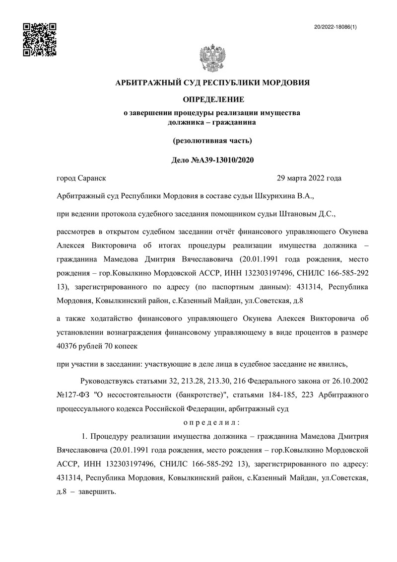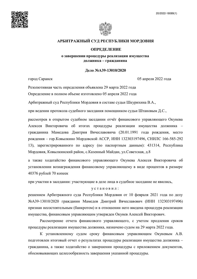 Дело № А39-13010/2020 завершилось 29 марта 2022 года