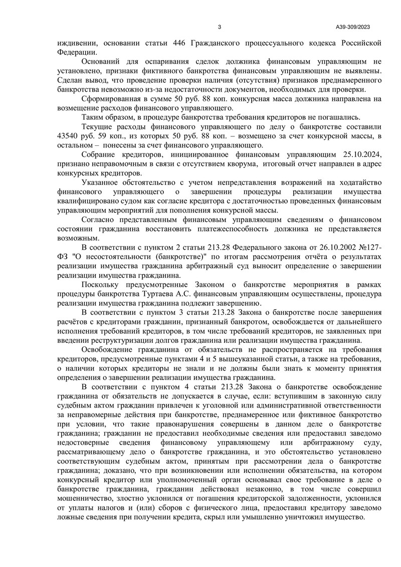 - Процедура реализации имущества была проведена под руководством финансового управляющего, который подал отчёт о проделанной работе и ходатайство о завершении процедуры.