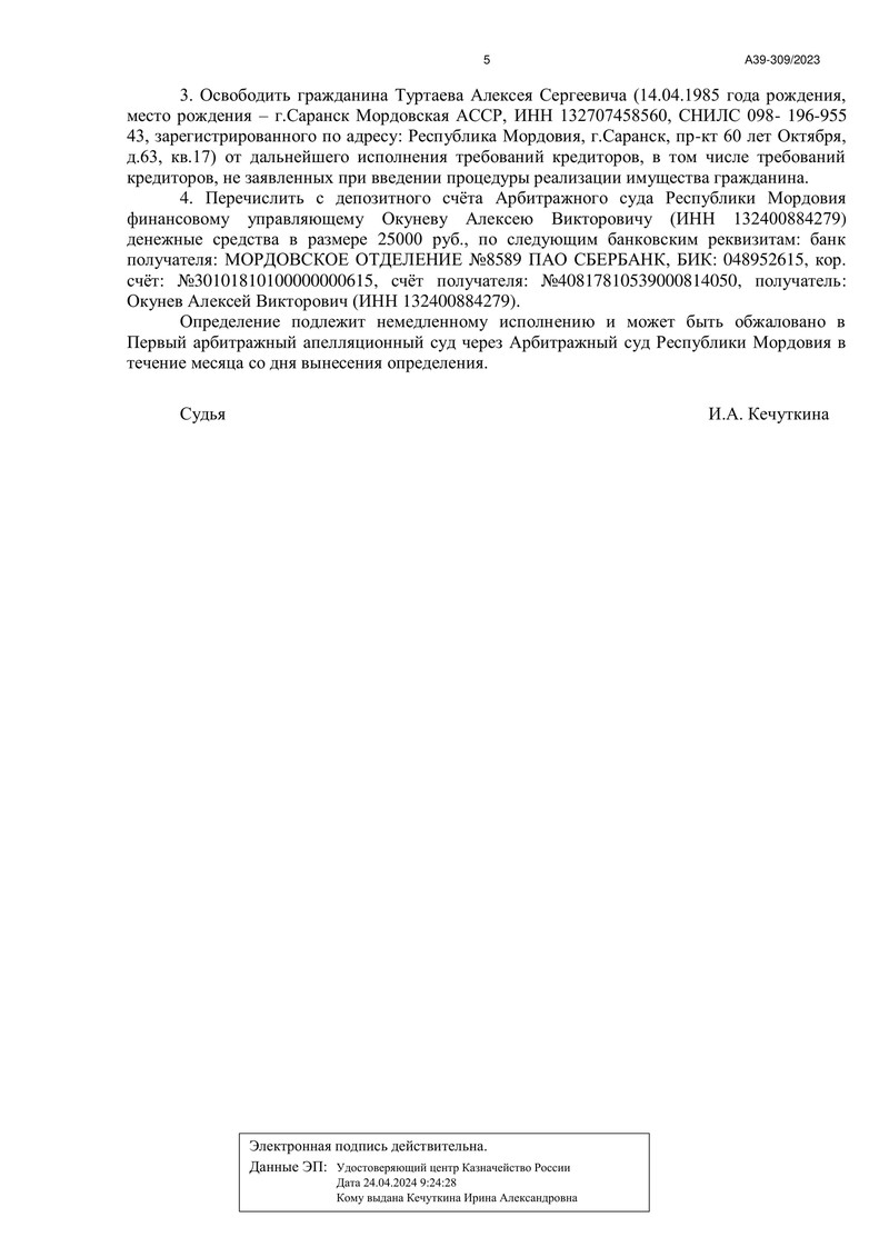Компания "ДОЛГАМ.НЕТ" вновь оправдала доверие своих клиентов! Решение по делу №А39-309/2023 стало итогом профессиональной работы наших специалистов, которые помогли еще одному своему клиенту избавиться от долговых обязательств и начать новую финансовую жизнь.
