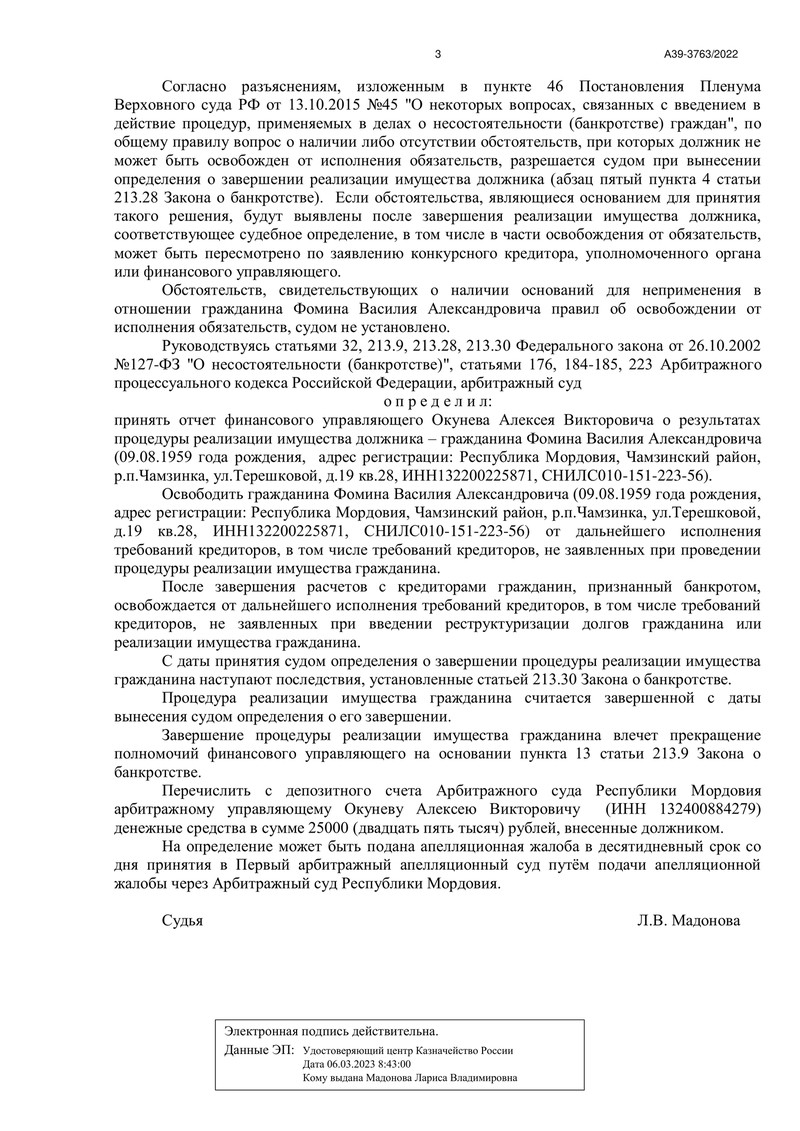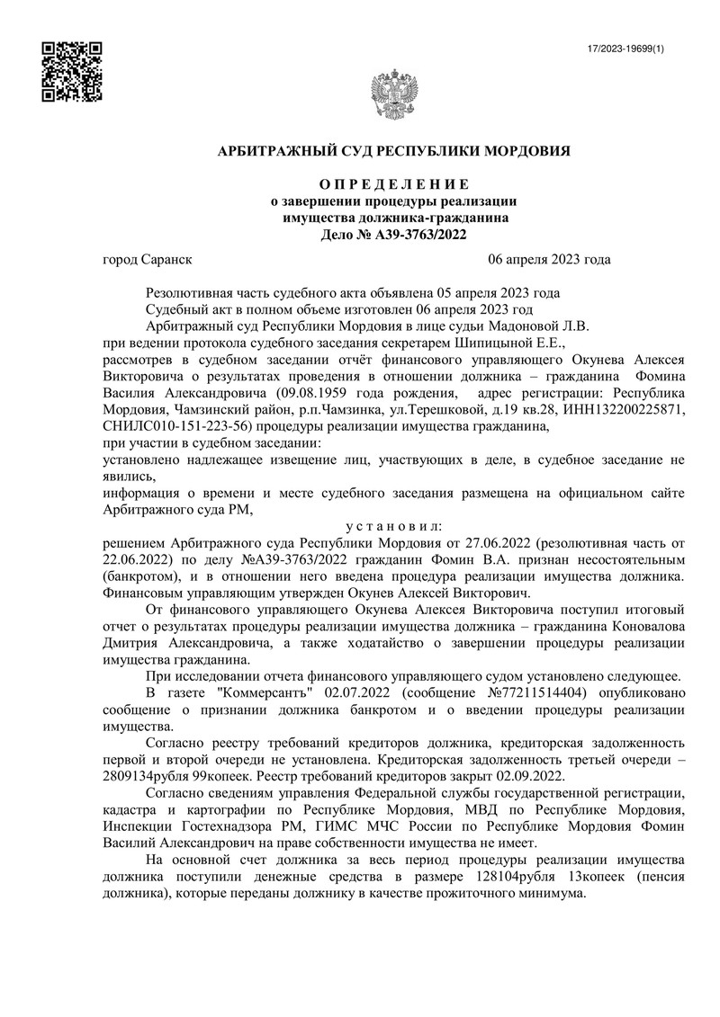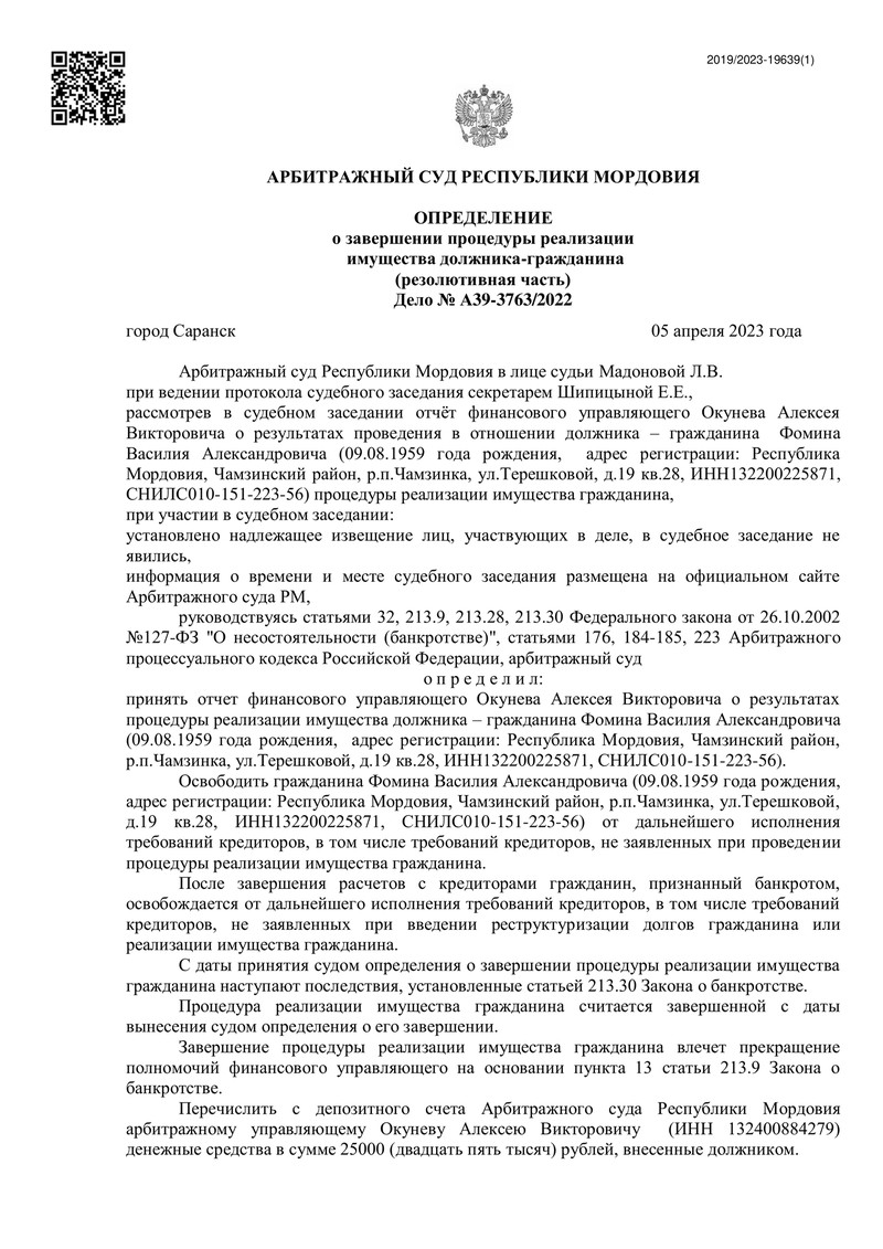 На этот раз счастливым клиентом компании "ДОЛГАМ.НЕТ" стал гражданин из Республики Мордовия. Дело №А39-3763/2022, рассмотренное судом 5 апреля 2023 года, стало успешным шагом в направлении финансовой свободы нашего клиента.