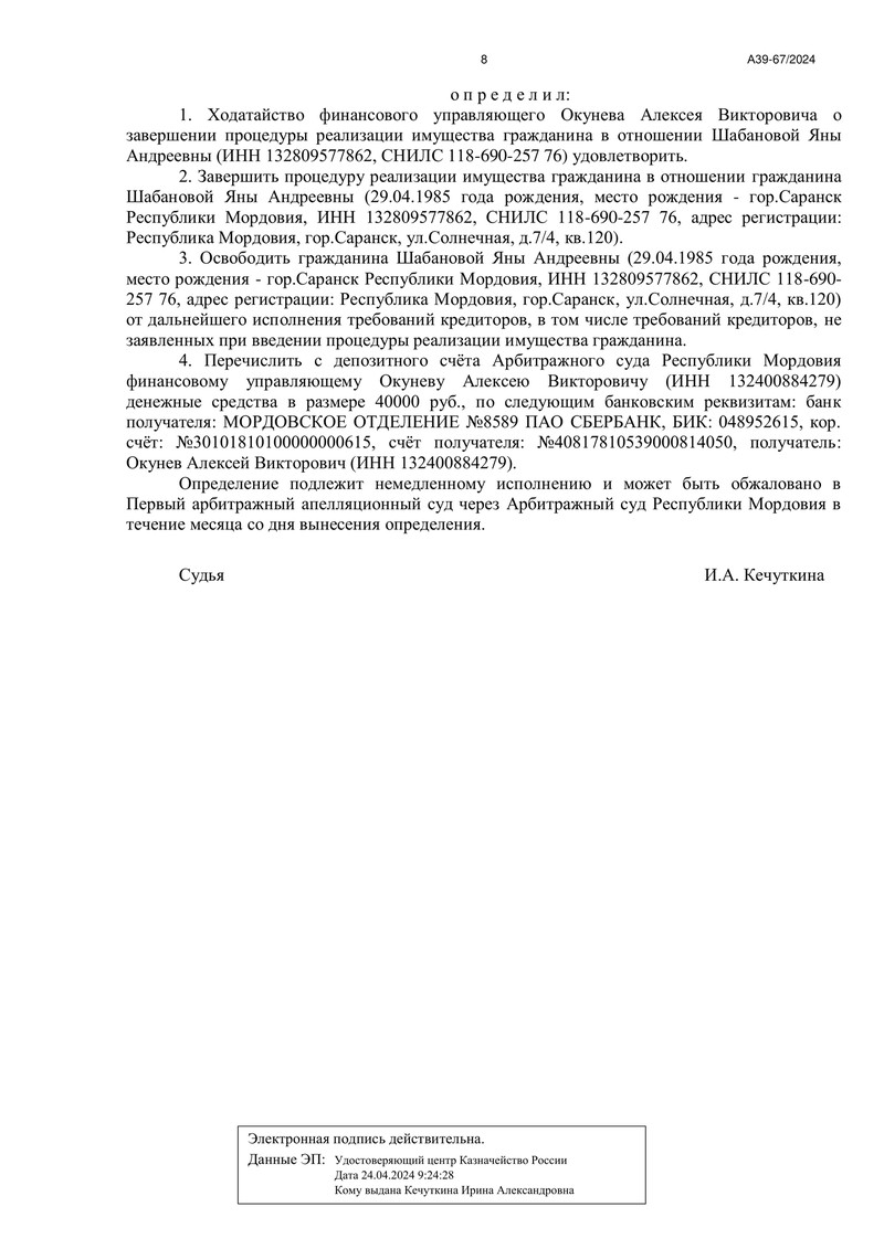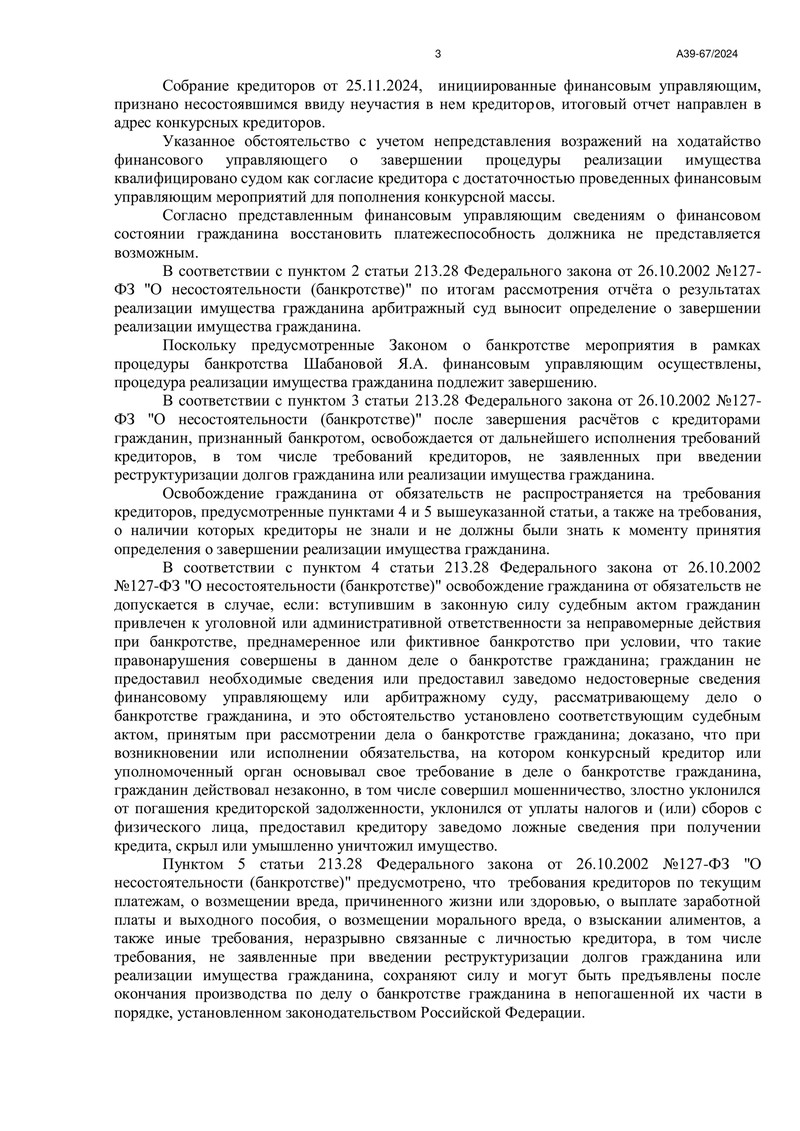 Арбитражный суд рассмотрел ходатайство финансового управляющего и 31 января 2025 года вынес решение: