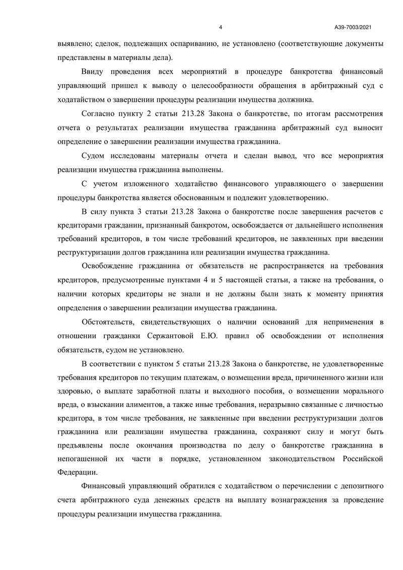 Суд тщательно изучил отчет финансового управляющего и установил, что все мероприятия, предусмотренные законом, выполнены в полном объеме. В итоге суд принял решение завершить процедуру банкротства и освободить клиента компании "ДОЛГАМ.НЕТ" от дальнейшего исполнения обязательств перед кредиторами.