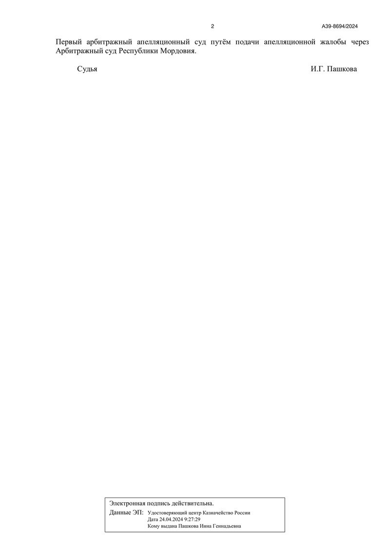 - Дело рассматривалось в Арбитражном суде Республики Мордовия.