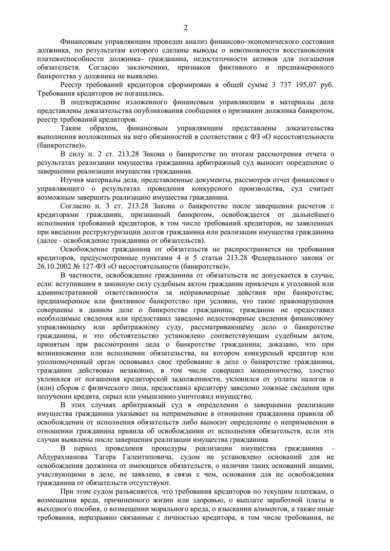 - Освободить гражданина от дальнейшего исполнения требований кредиторов, включая требования, которые не были заявлены в ходе процедуры.