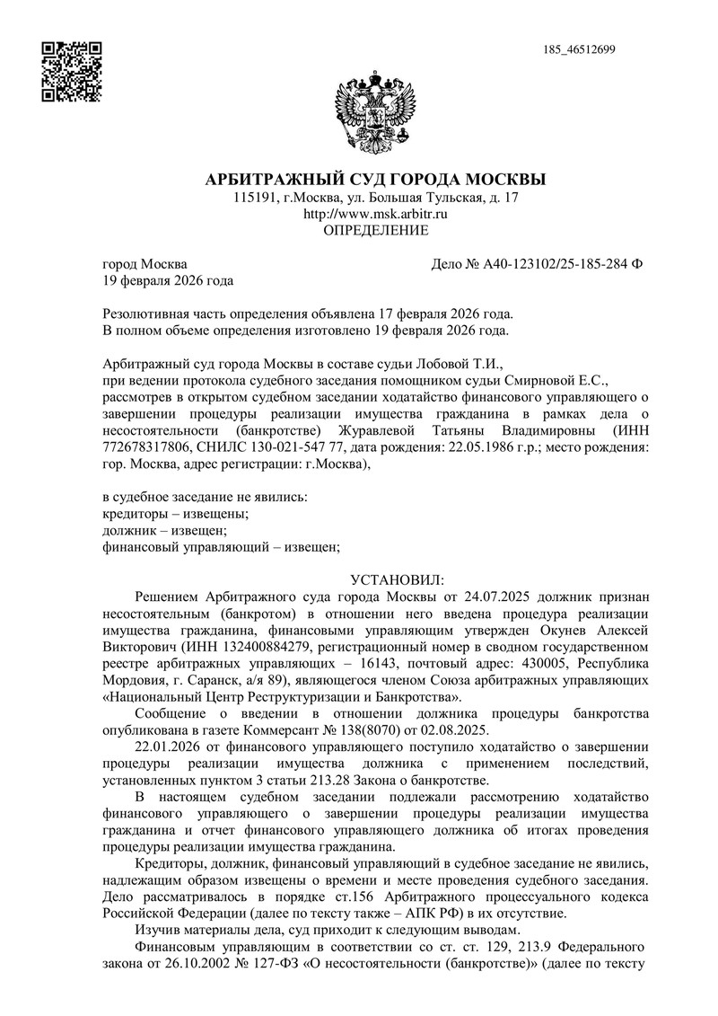 Дело о банкротстве физического лица №А40-123102/2025