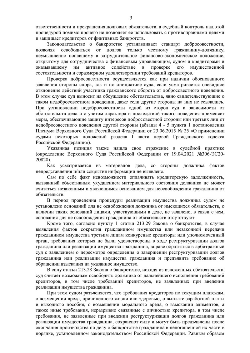 Судебный акт об освобождении от долгов