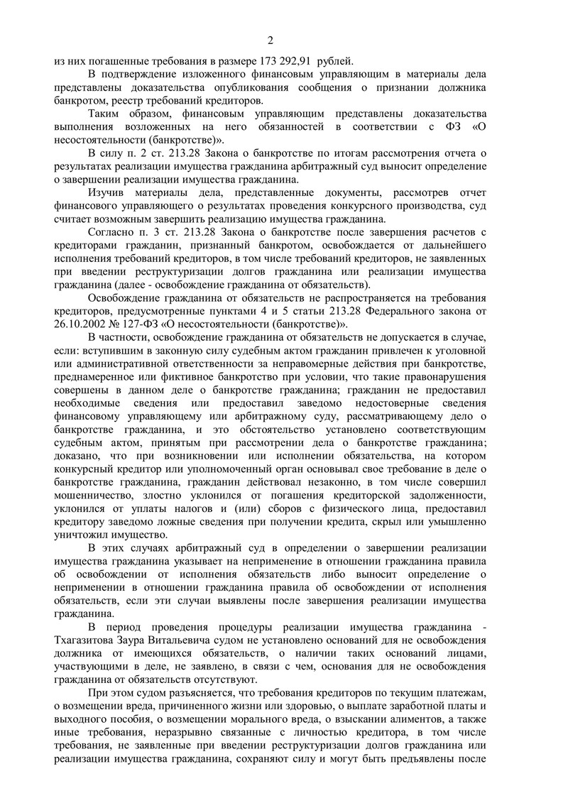 - погашение требований кредиторов на сумму 173 292 рубля.