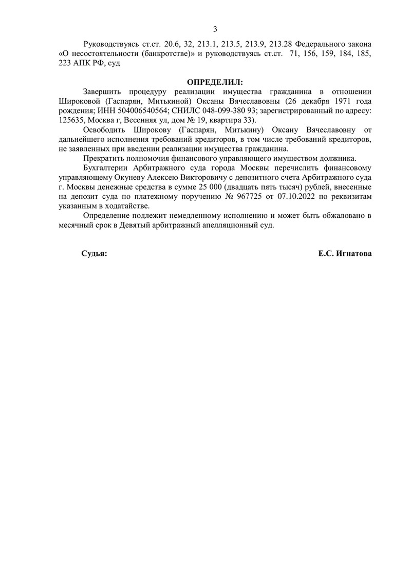 Этот кейс еще раз доказывает, что даже при многомиллионной кредитной нагрузке возможно добиться полной финансовой реабилитации. Суд подтвердил, что процедура прошла без нарушений, завершил процедуру банкротства и освободил нашего клиента от дальнейшего исполнения обязательств .