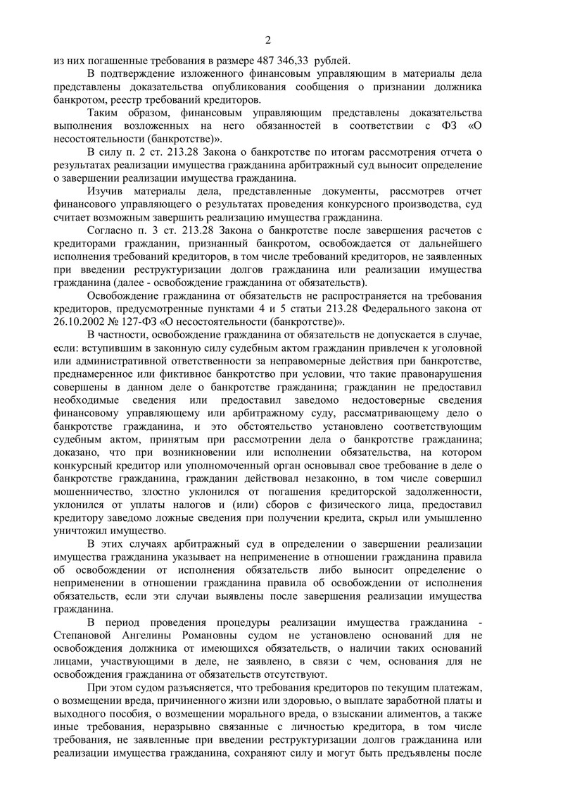 - Суд завершил процесс реализации имущества.
