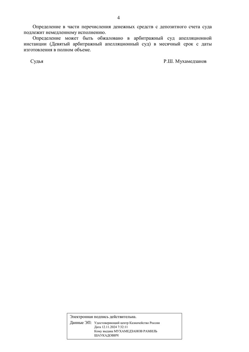 Также суд определил перечислить финансовому управляющему фиксированное вознаграждение 25 000,00 руб. с депозитного счета Арбитражного суда города Москвы.