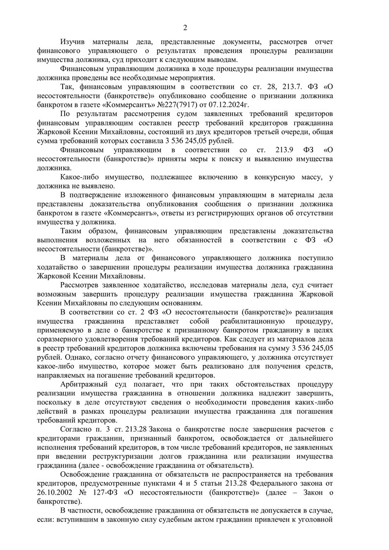 - В результате судебного процесса бывший должник полностью освободился от долгов на сумму 3 536 245,05 рублей!