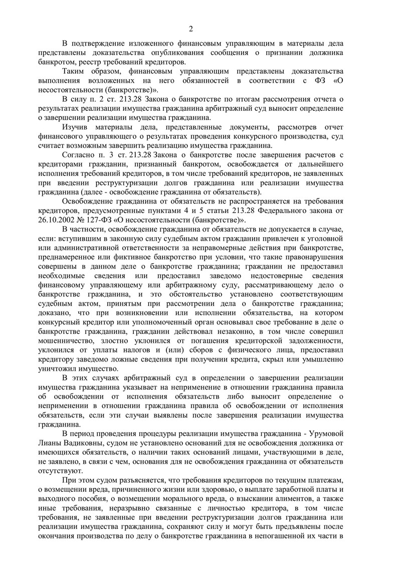 В реестр требований кредиторов были включены обязательства на сумму 1 613 024 рубля. Ввиду отсутствия имущества возможности погасить задолженность не предоставлялось. Таким образом, определение Арбитражного суда освободило нашего клиента от дальнейшего исполнения заявленных и не заявленных требований кредиторов.