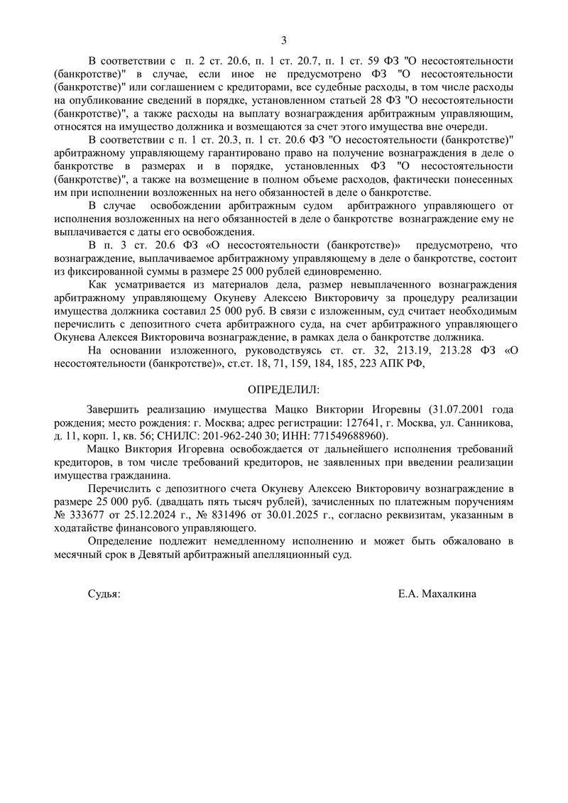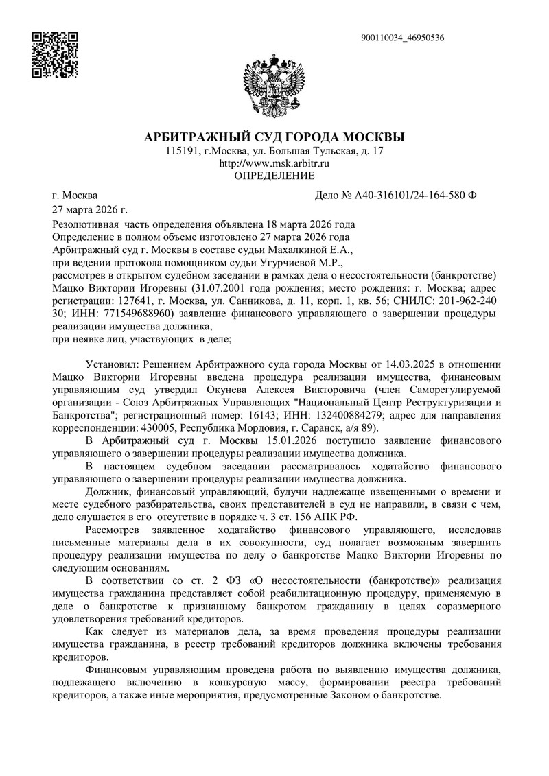 Дело о банкротстве физического лица №А40-316101/2024