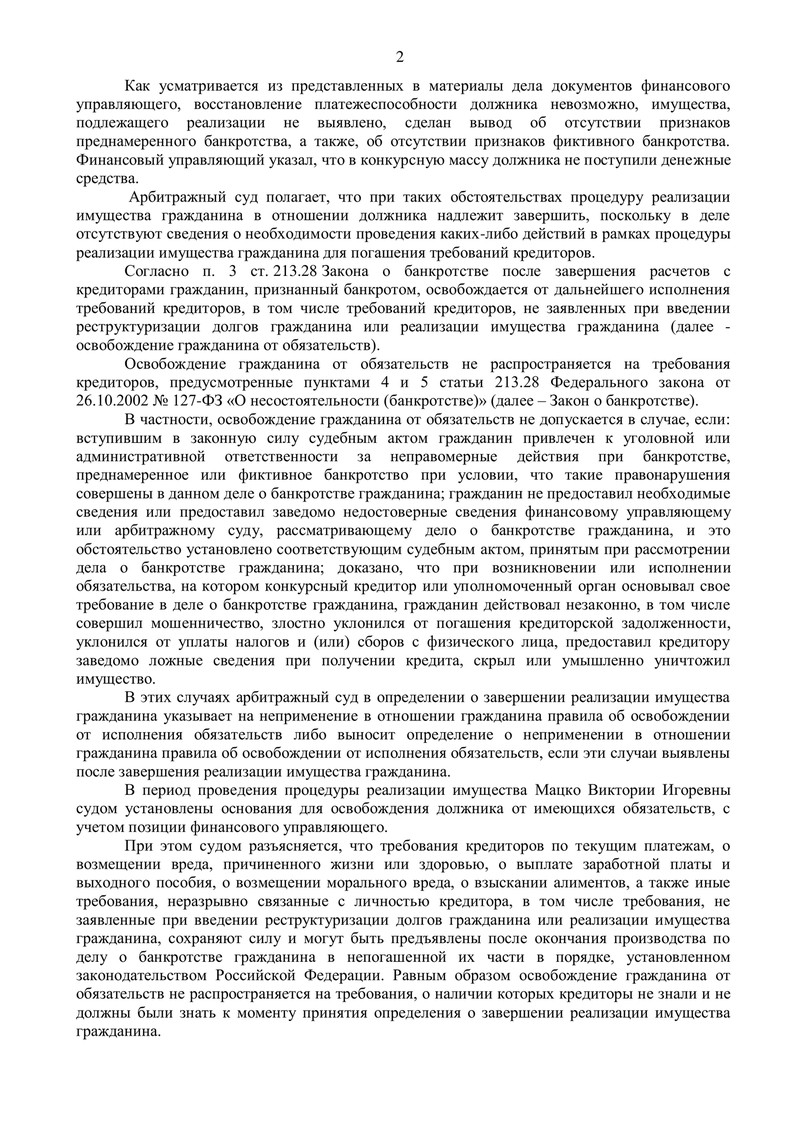 Судебный акт об освобождении от долгов