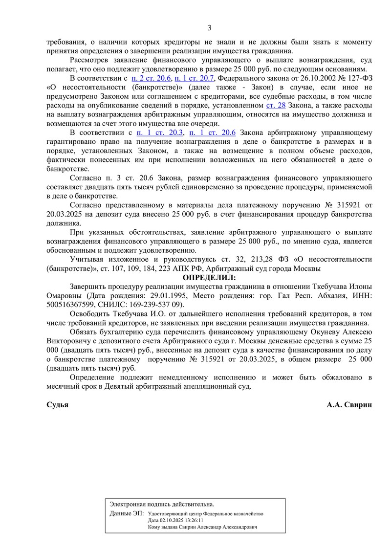 Что сделал финансовый управляющий и почему суд завершил процедуру
