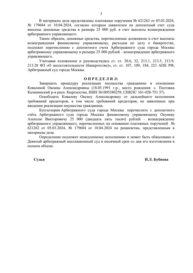 Дело показательно тем, что процедура прошла спокойно и юридически чисто: финансовый управляющий подтвердил отсутствие признаков злоупотреблений, имущество было выявлено и реализовано, отчетность представлена, а суд — на основании закона — завершил банкротство и применил правило освобождения от обязательств.