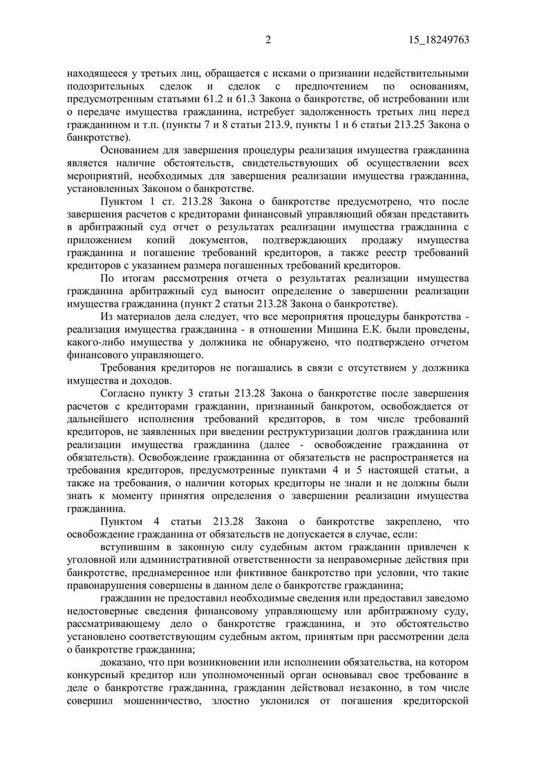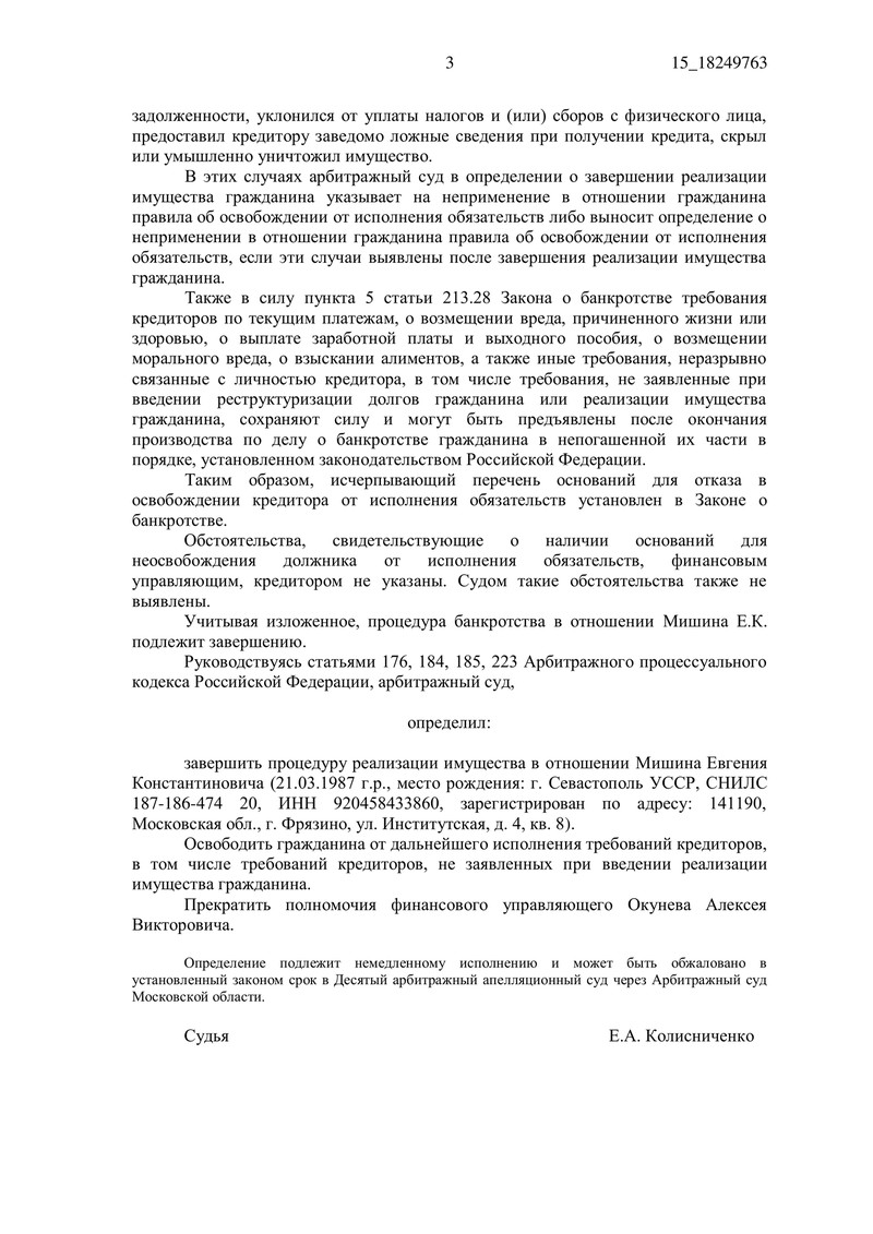 - Все процессуальные нормы соблюдены. Финансовый управляющий и участники процесса тщательно исполнили все требования Федерального закона №127-ФЗ "О несостоятельности (банкротстве)", что исключило возможность отказа в освобождении гражданина от долгов.