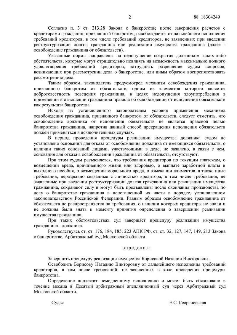 - На завершающем этапе выяснилось, что основания для отказа в освобождении нашего клиента от обязательств не выявлены.
