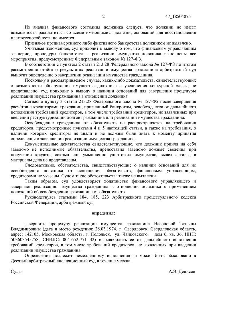 - Отсутствие оснований для отказа в освобождении клиента от обязательств перед кредиторами.