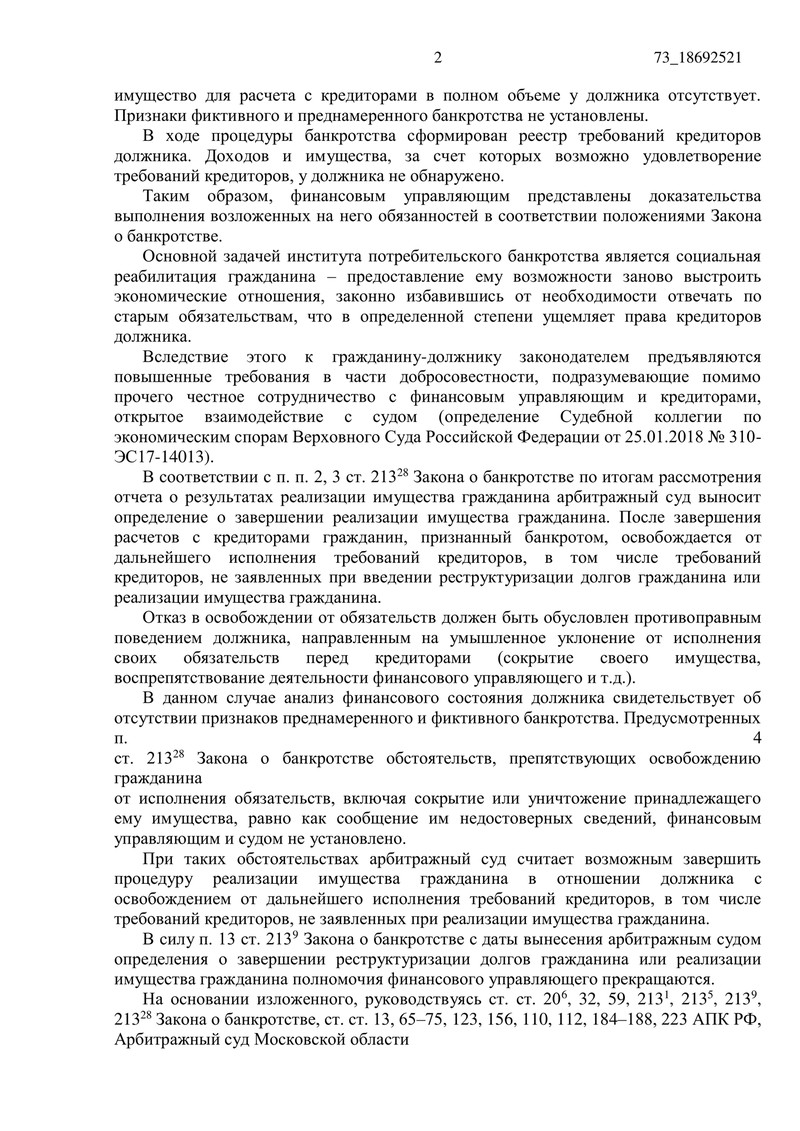 Дело № А41-115125/2024: банкротство физического лица в Московской области завершено, долги списаны