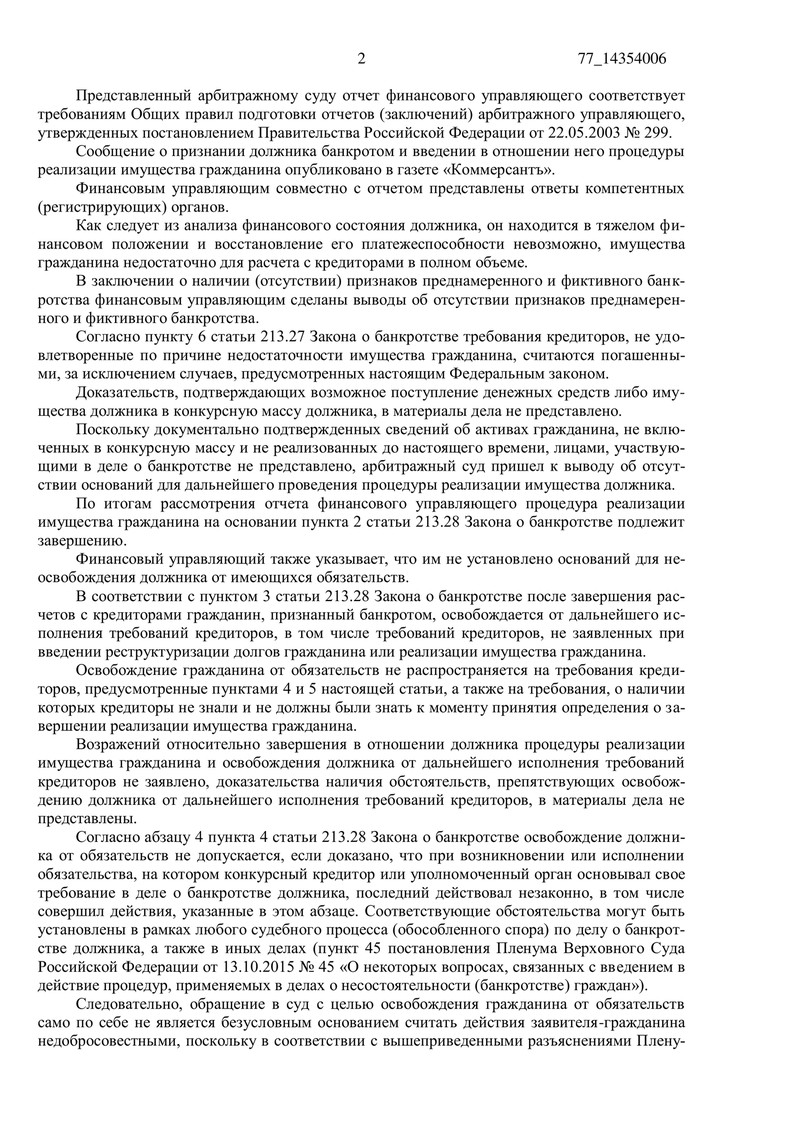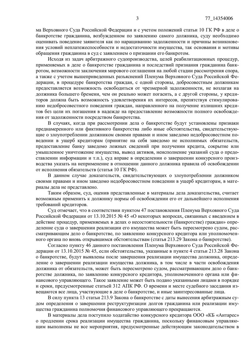 Согласно Закону о банкротстве суд освободил гражданина от дальнейшего исполнения требований кредиторов. Это значительное событие в жизни клиента, который теперь может начать с чистого листа и больше не переживать о прежних долгах.