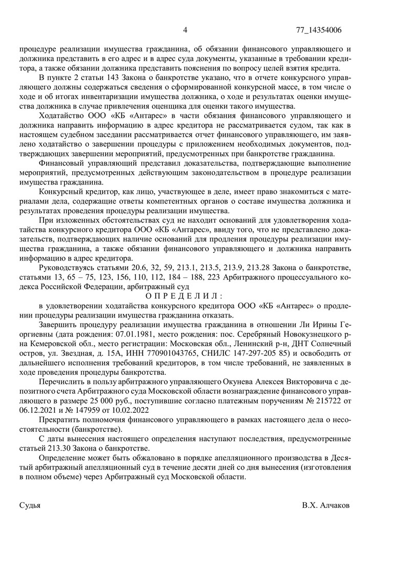 Процедура банкротства началась 9 марта 2022 года, когда Арбитражным судом Московской области была введена процедура реализации имущества гражданина. Финансовый управляющий подготовил отчет о результатах своей работы, приложив все необходимые документы для подтверждения, а также ходатайство о завершении процедуры и освобождении должника от дальнейших обязательств перед кредиторами.
