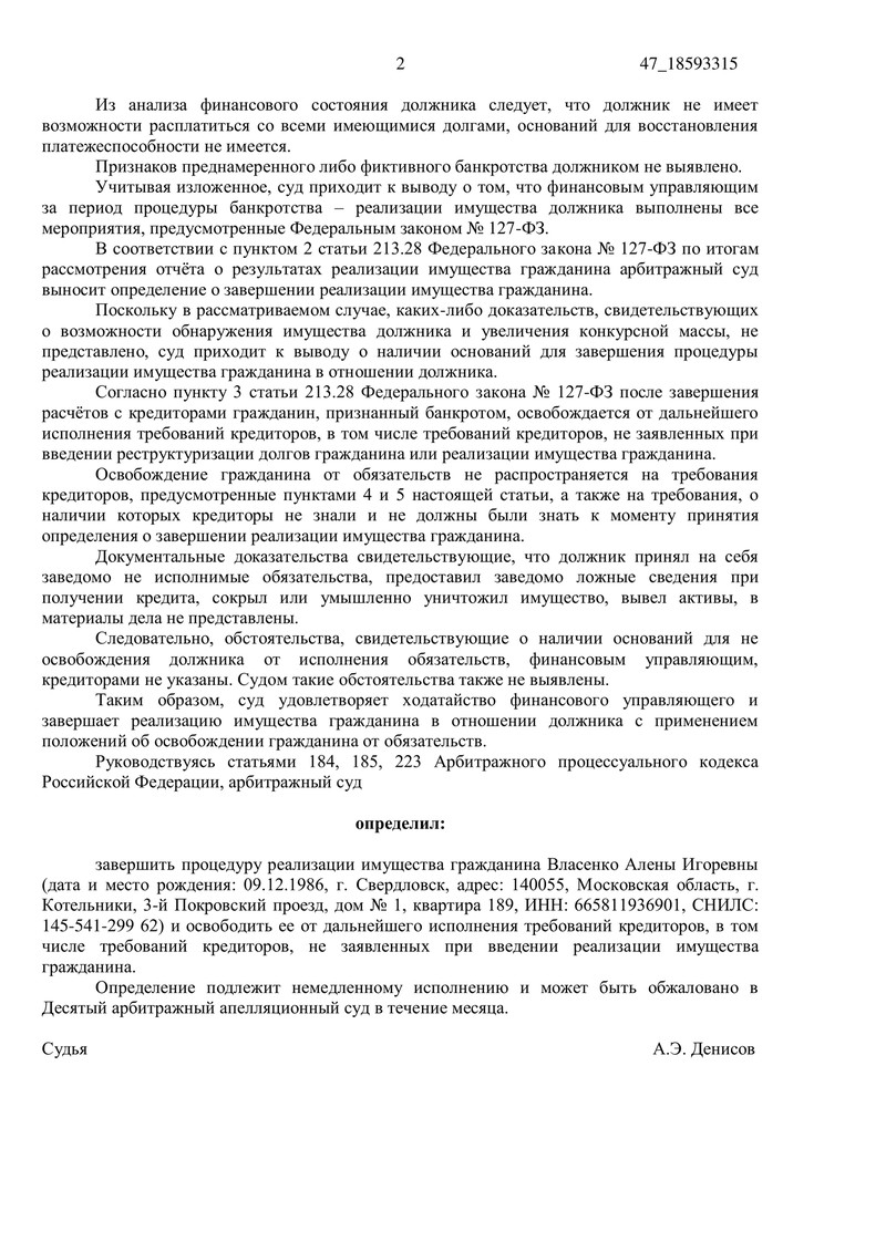 - Суд освободил нашего клиента от всех обязательств перед кредиторами. Теперь бывший должник полностью избавлен от долгового бремени, а его финансовое будущее вновь стало безоблачным!