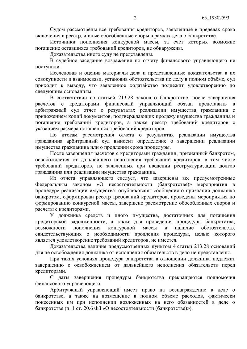 Этот результат — наглядный пример того, как банкротство с командой ДОЛГАМ.НЕТ приводит к законному и окончательному решению долговой проблемы: процедура доводится до конца, отчет управляющего подтверждается судом, а клиент получает ключевое — освобождение от долговых обязательств.