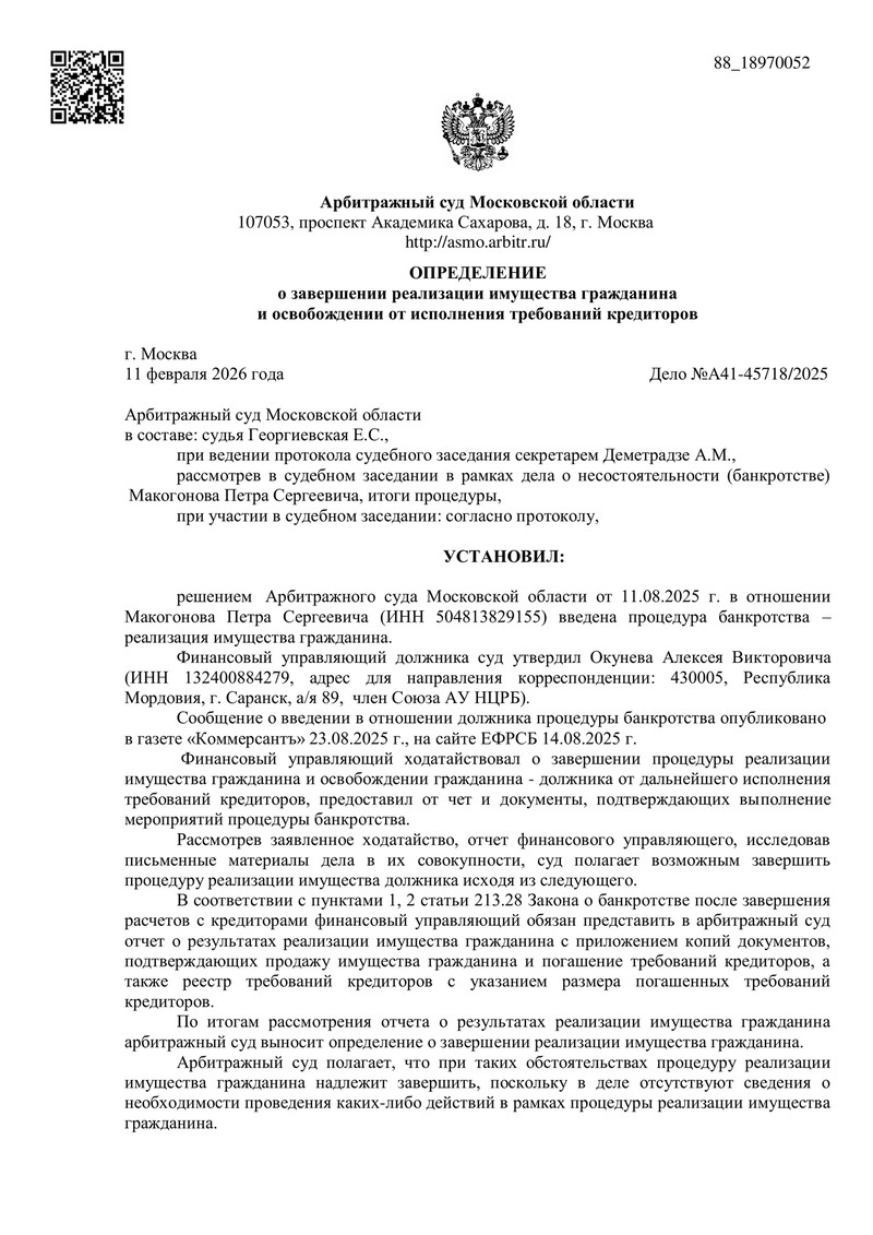 Процедура банкротства еще одного клиента "ДОЛГАМ.НЕТ" завершилась успешно. Арбитражный суд Московской области поставил точку в деле №А41-45718/2025 и затянувшейся долговой нагрузке. Общий объем обязательств нашего клиента составлял 1 207 500 руб., а итогом стало освобождение от дальнейшего исполнения требований кредиторов.