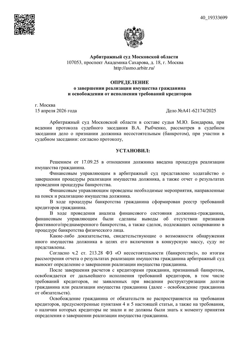 Ура, вот и завершилась процедура банкротства. Процедура длилась с октября 2023 по март 2026 года. Она была длительной в связи с активностью одного кредитора, но завершилась. Специалисты из ООО «ДОЛГАМ.НЕТ» профессионально сопровождали процесс на протяжении всего банкротства, отвечали на все... Подробнее