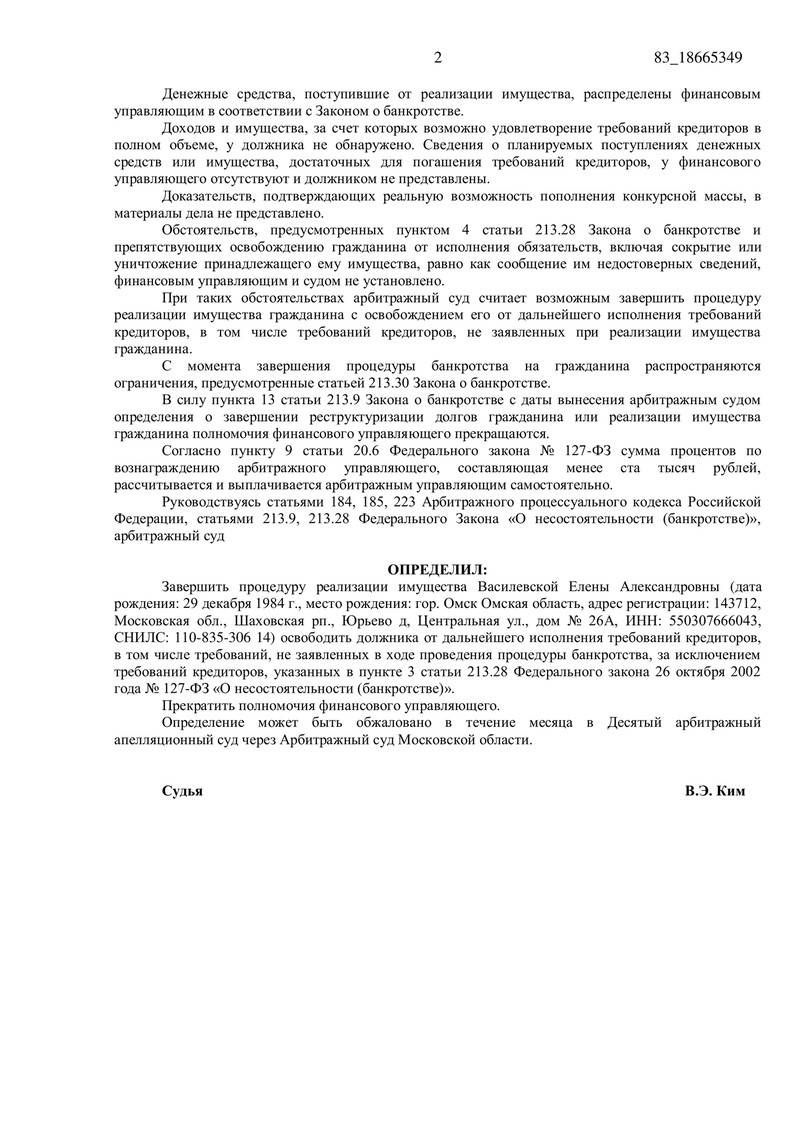 Важный момент для любого должника наступает, когда суд проверяет, нет ли обстоятельств, препятствующих списанию долгов: например, фактов сокрытия имущества или предоставления недостоверных сведений. По данному делу такие обстоятельства установлены не были. Возражений против завершения процедуры со стороны участников также не поступило.