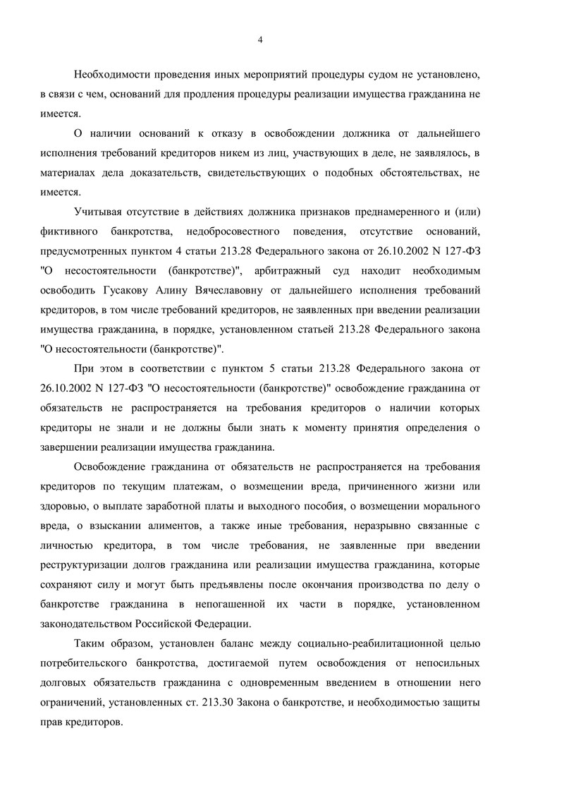 Таким образом, суд завершил процедуру реализации имущества и освободил нашего клиента от дальнейшего исполнения требований кредиторов. Это решение является очередным доказательством эффективности работы "ДОЛГАМ.НЕТ", которая продолжает помогать людям справляться с финансовыми трудностями.