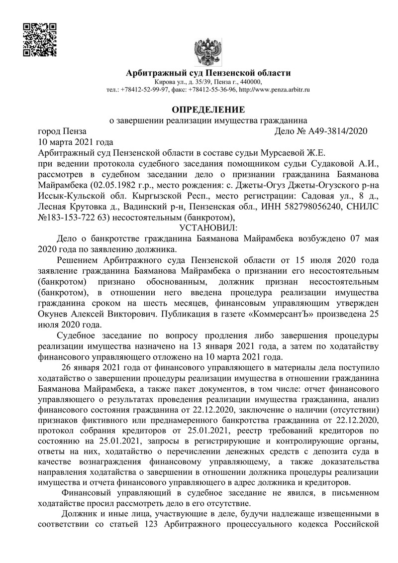 Арбитражный суд Пензенской области завершил дело о банкротстве еще одного клиента компании "ДОЛГАМ.НЕТ" и освободил его от дальнейшего исполнения обязательств перед кредиторами.
