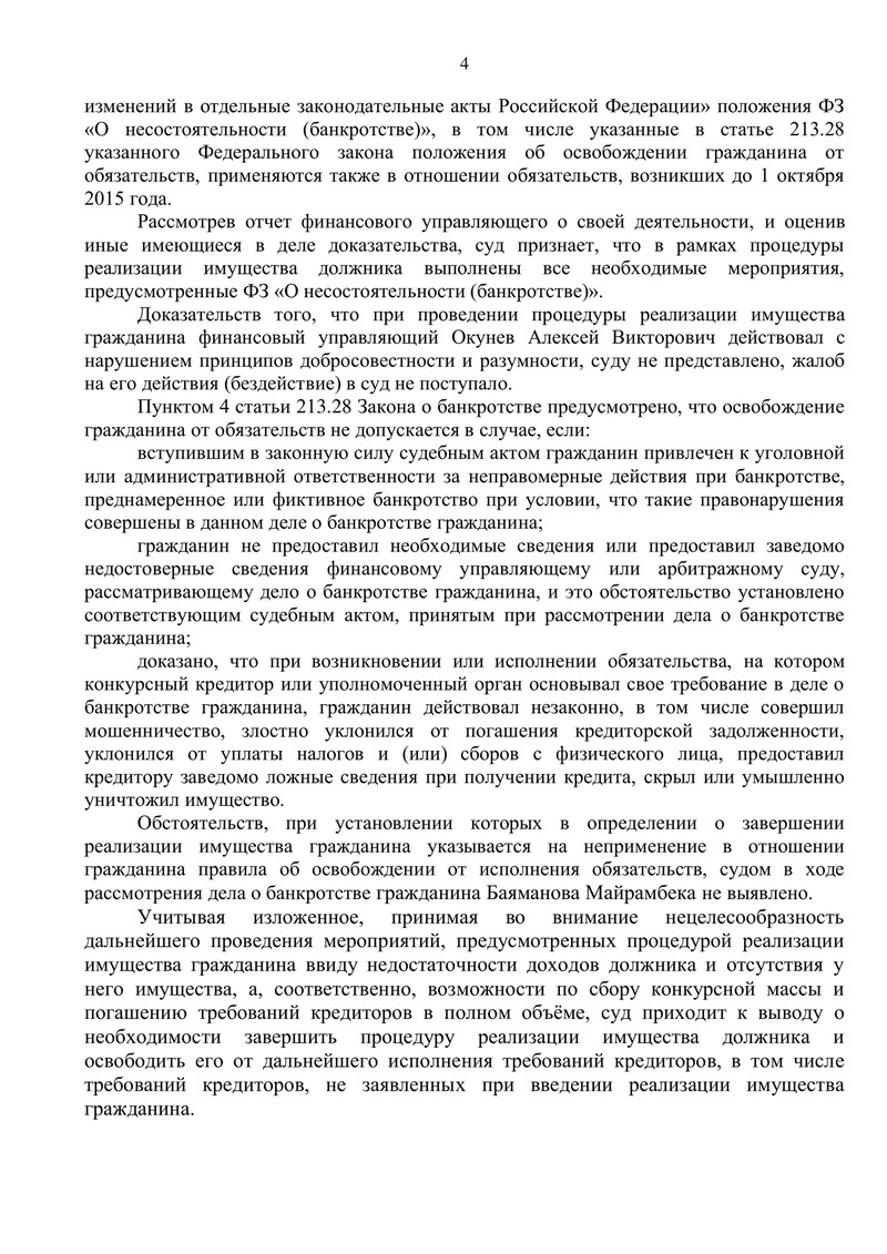 10 марта 2021 года должник был освобожден от дальнейшего исполнения требований кредиторов, что подтверждает профессионализм специалистов компании "ДОЛГАМ.НЕТ". Мы продолжаем помогать людям восстанавливать финансовую стабильность и избавляться от долговой нагрузки.